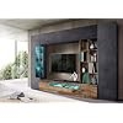 Muro de dmora equipado con sala de estar, hecha en Italia, con luz azul, base de televisión y unidad