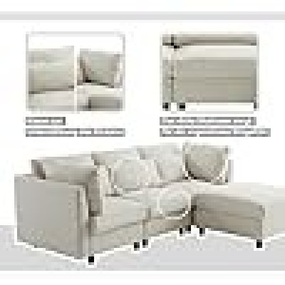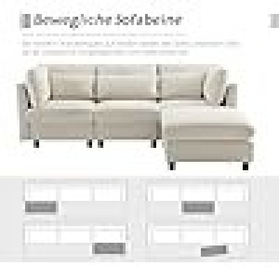 página de título > Hogar y cocina > Kecduey 3 asientos en forma de L, diseño moderno, muebles acolchados, esquina con reposapiés y F
