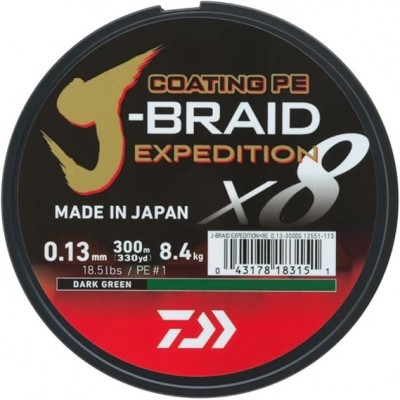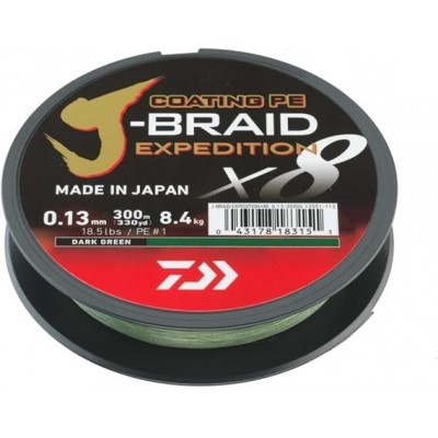 Daiwa J-Braid Expedition x8e, 300m, verde oscuro/verde oscuro, línea tejida
