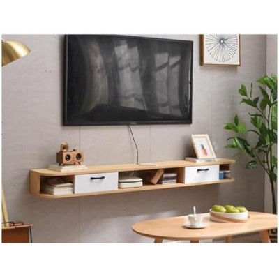 página de título > Gabinete de televisión flotante genérico, hecho de madera maciza para pared, con orificios para cabl