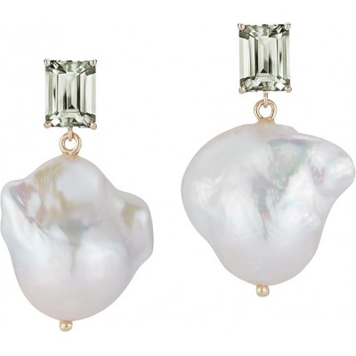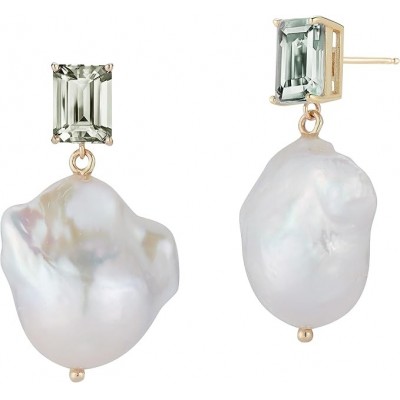 Mateo New York Pendientes pendientes con amatista verde de 14kt y perlas barroca, única talla